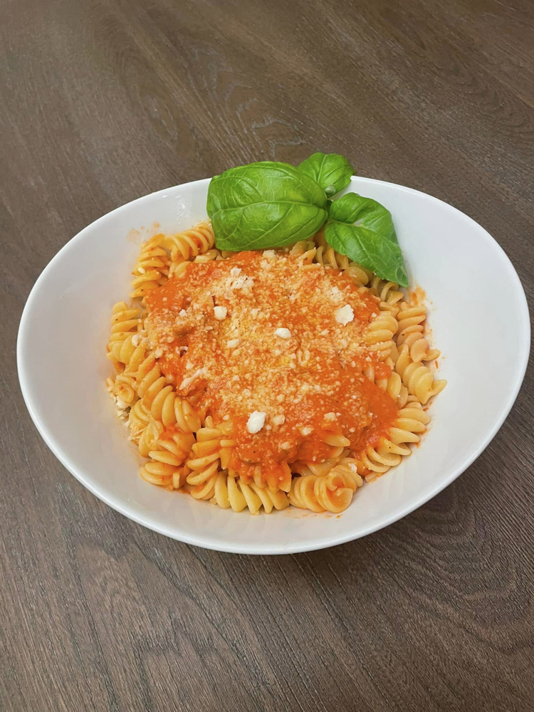 Tomato based cream sauce made with vodka, prosciutto, and cheese. 32 oz container makes about 1.5 to 2 pounds of pasta.