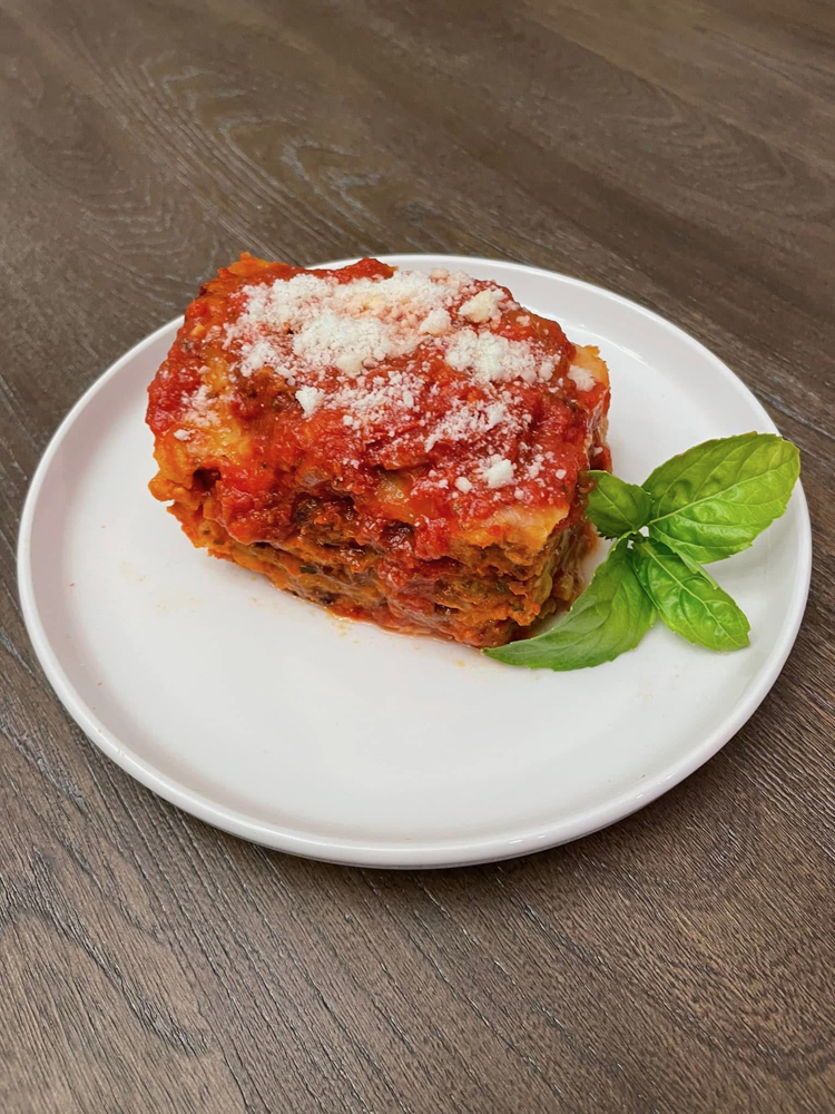 Thin sliced chicken cutlet is breaded and fried, then covered in a delicious Sunday Gravy and topped with melted mozzarella cheese. Served with spaghetti. Feeds family of 2 or 4.
